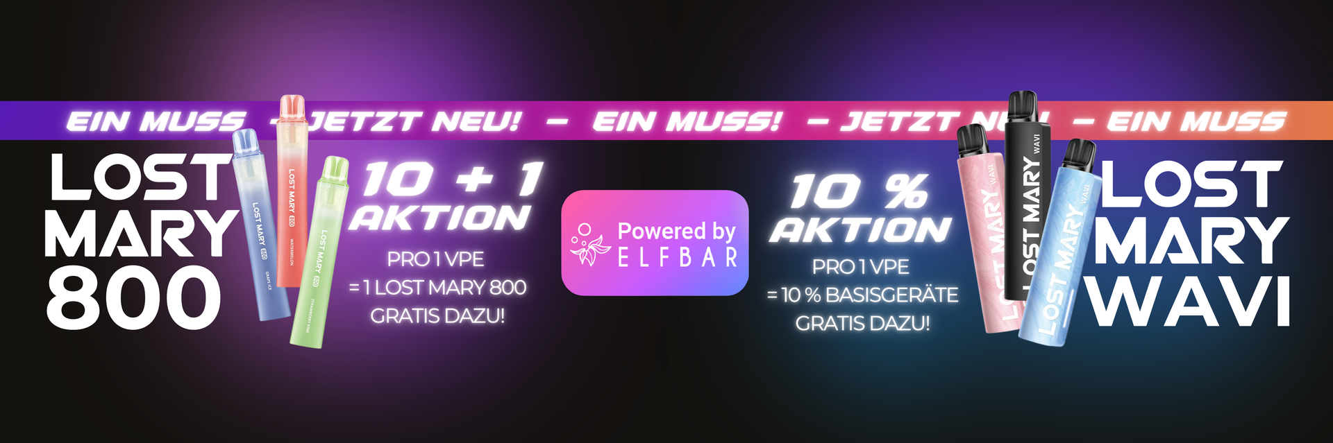 (AKTION 10+1 gratis) 10x Elfbar Lost Mary 800 Nikotin Einweg E-Zigarette