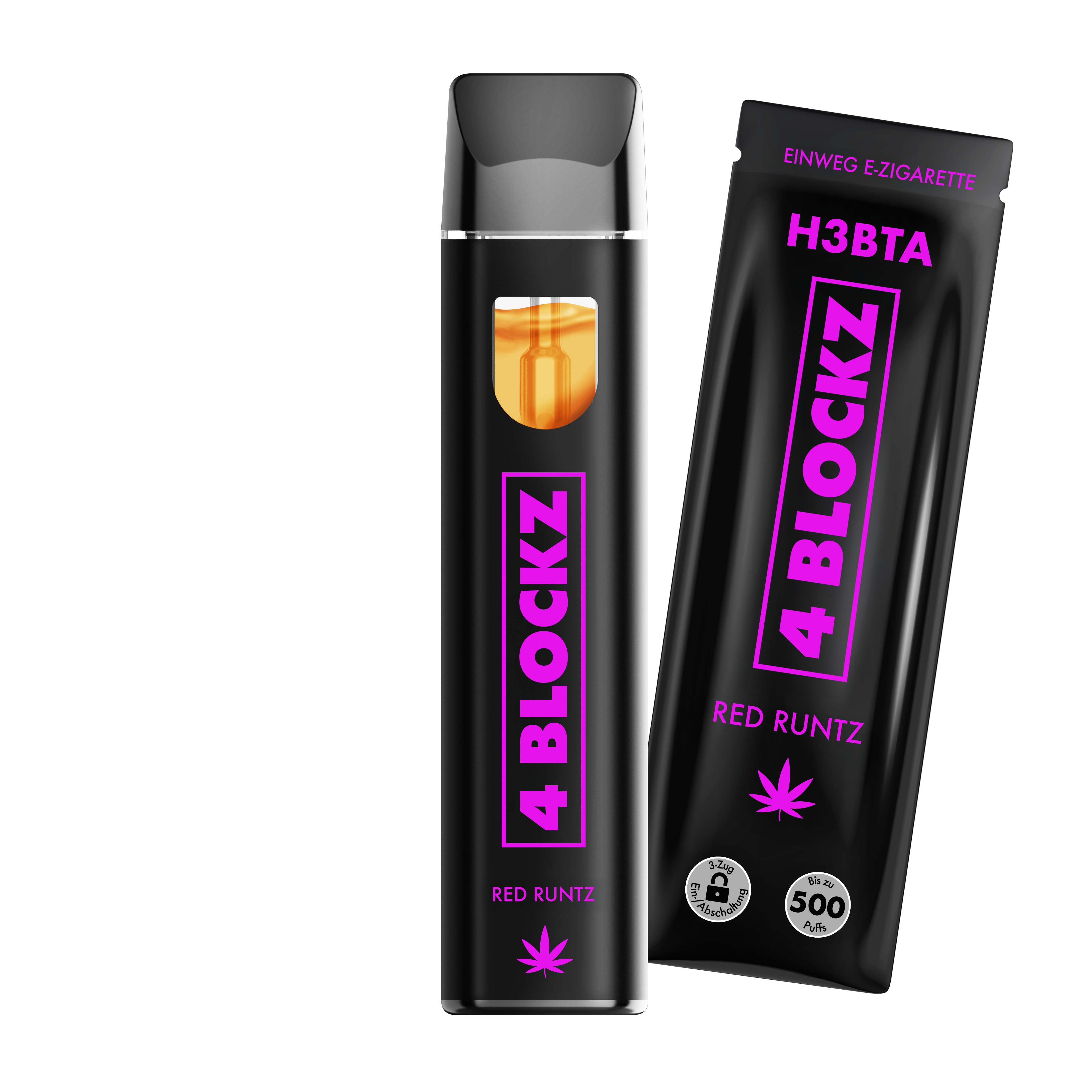 Die 4BLOCKZ H3BTA ist eine handliche Einweg-Vape, die dir ein deutlich spürbares H3-Erlebnis mit bis zu 500 Zügen bietet – ganz ohne THC und Nikotin.
