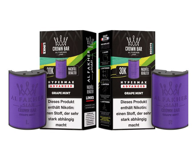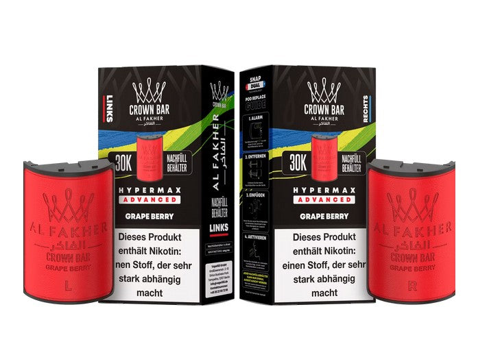 10x Al Fakher Hypermax Advanced 30K Pods - 6mg Nikotingehalt (5 Linke + 5 Rechte Pods)