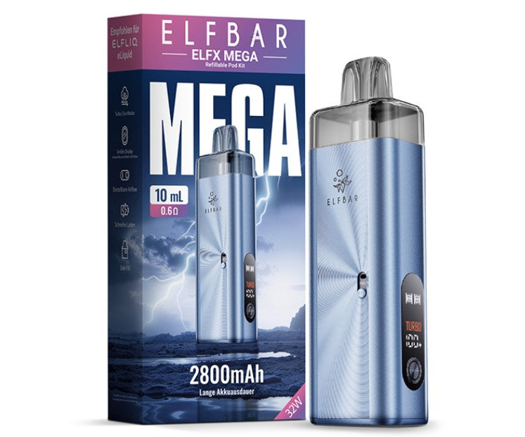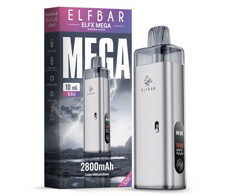 Das Elfbar ELFX Mega Pod Kit verfügt über einen fest verbauten Akku mit 2800 mAh Kapazität und erreicht eine maximale Leistung von bis zu 32 Watt. Damit bietet es eine zuverlässige Ausdauer für den ganzen Tag. Über den USB-C-Anschluss lässt sich der Akku schnell und bequem wieder aufladen – ideal für Dampfer, die Leistung und unkomplizierte Nutzung schätzen.