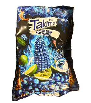 Takim's Roasted Corn Blue Flamas – knusprige Maiskörner mit intensiver Würze, rauchiger Schärfe und einem Hauch frischer Limette. Der perfekte Snack für alle, die feurigen und zugleich erfrischenden Genuss lieben.