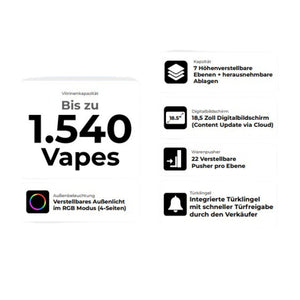 - 7 Höhenverstellbare Ebenen + herausnehmbare Ablagen