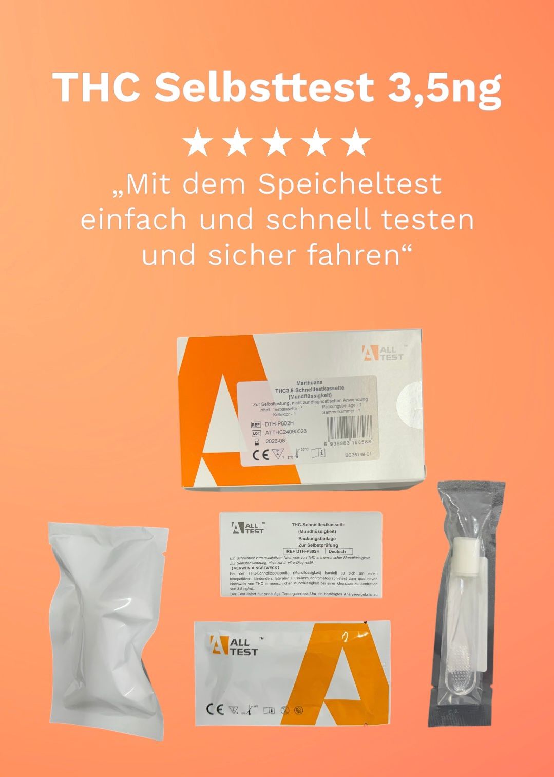 Mit dem Alltest THC-Schnelltest überprüfen Sie sicher und unkompliziert, ob Sie die gesetzlichen THC-Grenzwerte einhalten und somit sicher am Straßenverkehr teilnehmen können. Verlassen Sie sich auf die Genauigkeit und Benutzerfreundlichkeit dieses hochwertigen Produkts von Alltest.